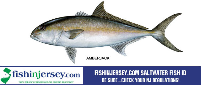 Amberjacks have a dark stripe on the head, which runs from the nose, through the eye, to the front of the first dorsal fin. Their backs are blue or olive-colored, the sides and belly are silver-white. Occasionally there is an amber or pinkish color to the body. Juveniles have five or six vertical bars along the sides. They have a long anal fin base. |