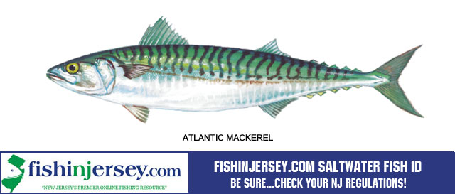 The mackerel is easily identified. It has a wide, deeply forked tail, striking black bands on both sides of the body, and finlets running on both the dorsal and ventral sides from the rear edge of the dorsal and anal fins to the tail. Most Atlantic mackerel are 12 to 18 inches in length and weigh less than 3 pounds. |