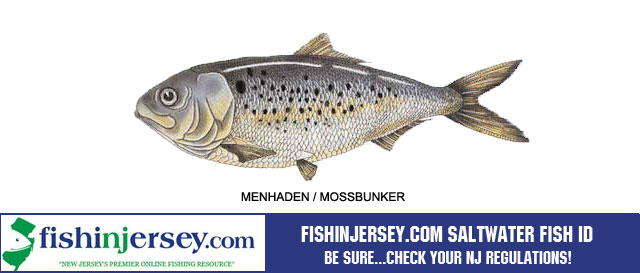 Menhaden are silvery in color with a distinct black shoulder spot behind their gill opening. They have a variable number of smaller spots on their sides. Like shad and herring, they possess a series of scutes along their belly. Their bodies are moderately compressed. Their caudal fin is deeply forked. Menhaden fins lack spines. |