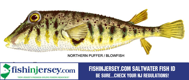Small to medium-sized fish with a blunt body capable of inflating with water and air. Puffers have grayish-brown backs and upper sides, but are yellowish-white on the lower sides and belly. Tiny black spots are scattered over most of the body, particularly the cheeks, and there is a row of seven to 10