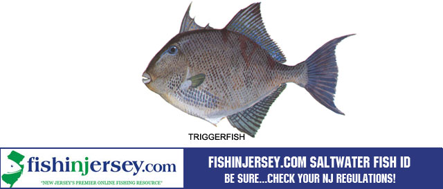 Triggerfish have large incisor-like teeth and deep laterally compressed bodies covered with tough, sandpaper-like skin. The action of the dorsal spines give the triggerfish its name. The first spine is large, and when erect it remains so until the smaller second spine is deflexed, triggering the first. Gray triggerfish are generally gray with green overtones, with about three faint, broad dark blotches on the upper body and often white dots and lines on the lower body and fins. There are bluish, purplish spots and lines on the upper body and dorsal fin. There is a pale, narrow band on the chin and the upper rim of the eye is blue. |